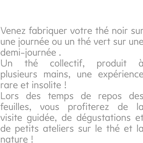 La fabrique collective du thé – possible sur les mois : avril, mai, juin, juillet, septembre, octobre.